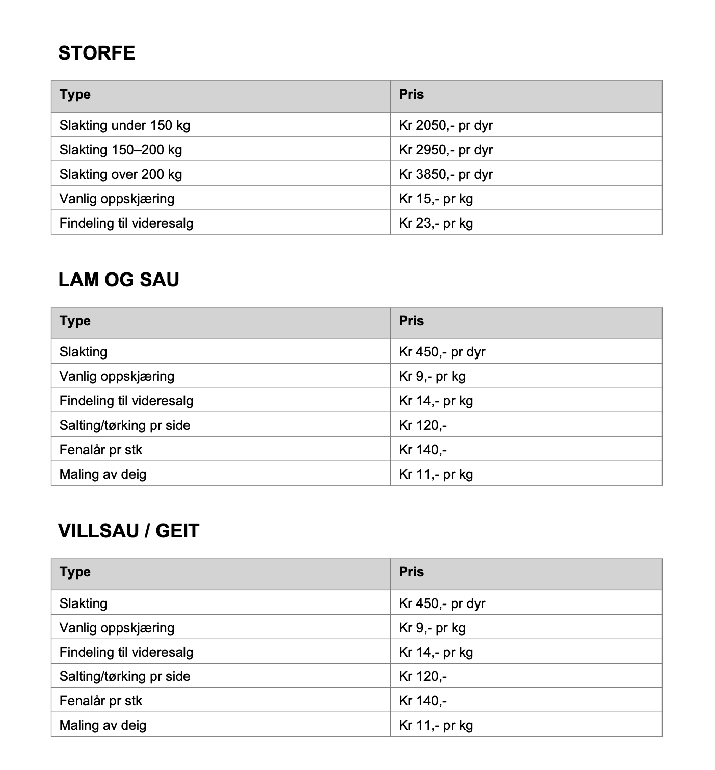 Med forbehold om feil i pristabellen*