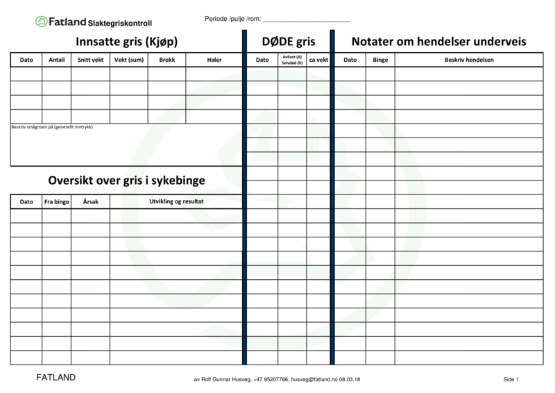 Produsentrådgivningstjenesten i Fatland har laget en slaktegrisprotokoll som er et nyttig verktøy for dyrehold. Denne kan du laste her og selv skrive ut for utfylling.