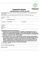 Storfe og svin som flyttes til en ny besetning skal følges av en egenerklæring.Erklæringen skal ikke være eldre enn sju dager og mottaker av dyra skal oppbevare denne i ett år. I erklæringen skal avsender av dyra bekrefte at: