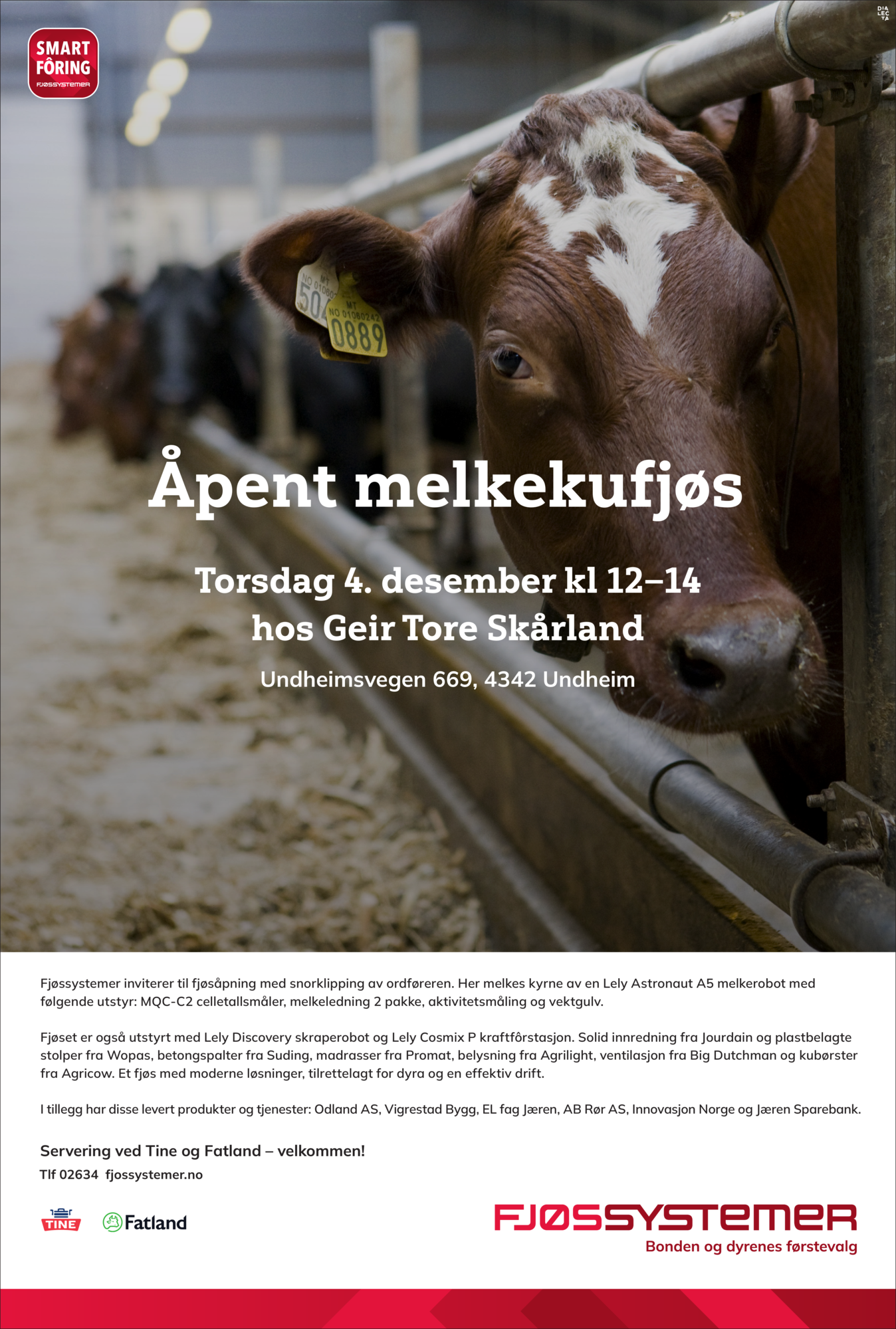 Velkommen til åpning av det nye melkekufjøset hos Geir Tore Skårland på Undheim!