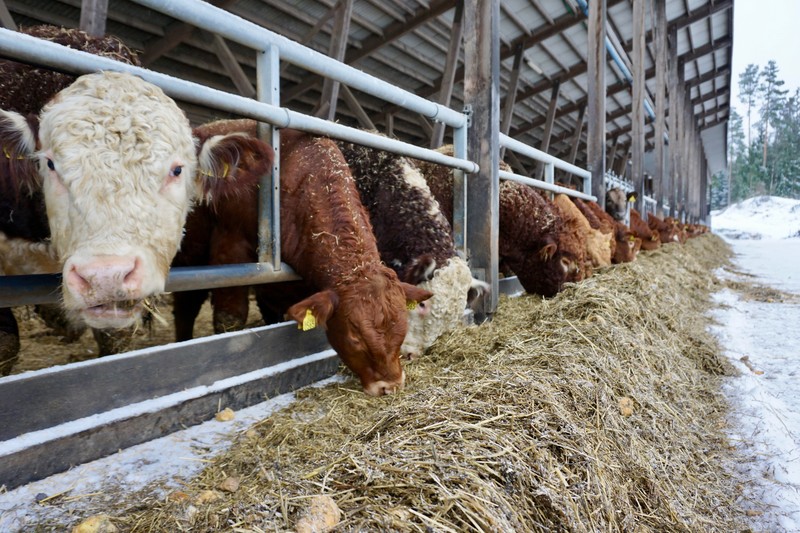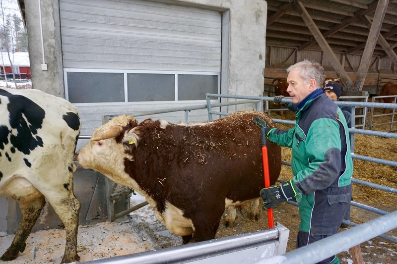 Første stopp denne dagen er hos Ole-Anders Holmsen, som denne gang har meldt inn fire kyr til slakting. Siden 1995 har Holmsen hatt den franske storferasen Blonde d’Aquitaine (uttales blond de akiten) frittgående ute i sine åpne fjøs, og på jordene som omkranser gården i Rakkestad.