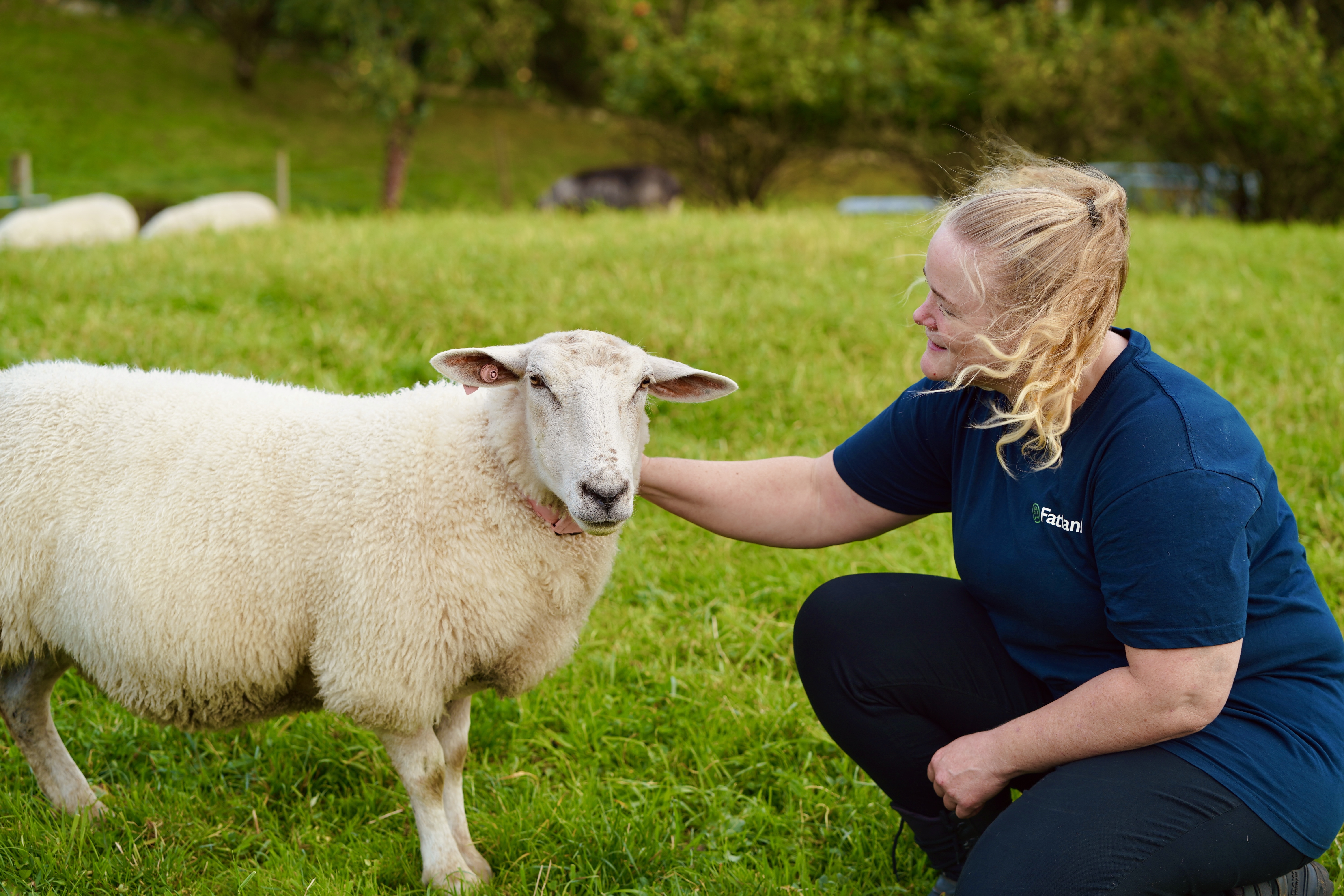 På et hotellrom på Østlandet tar rådgiveren en kort pause mellom produsentmøter. Solveig elsker å snakke om sau – om dyrevelferd, drift, avl og gleden ved å møte bøndene Fatland samarbeider med. Hun beskriver rollen som rådgiver som både variert og meningsfull.