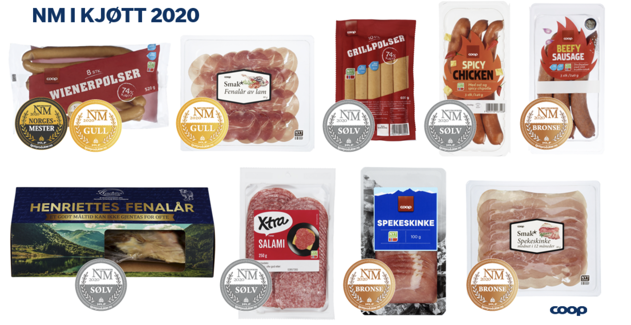 I tillegg fikk vi sølv for Coop grillpølsee, Coop Spicy Chiken-pølser med ost, Xtra salami og Heneriettes fenalår. Beefy sausage Smak* Spekeskinke, og Coop Spekeskinke fikk bronse.